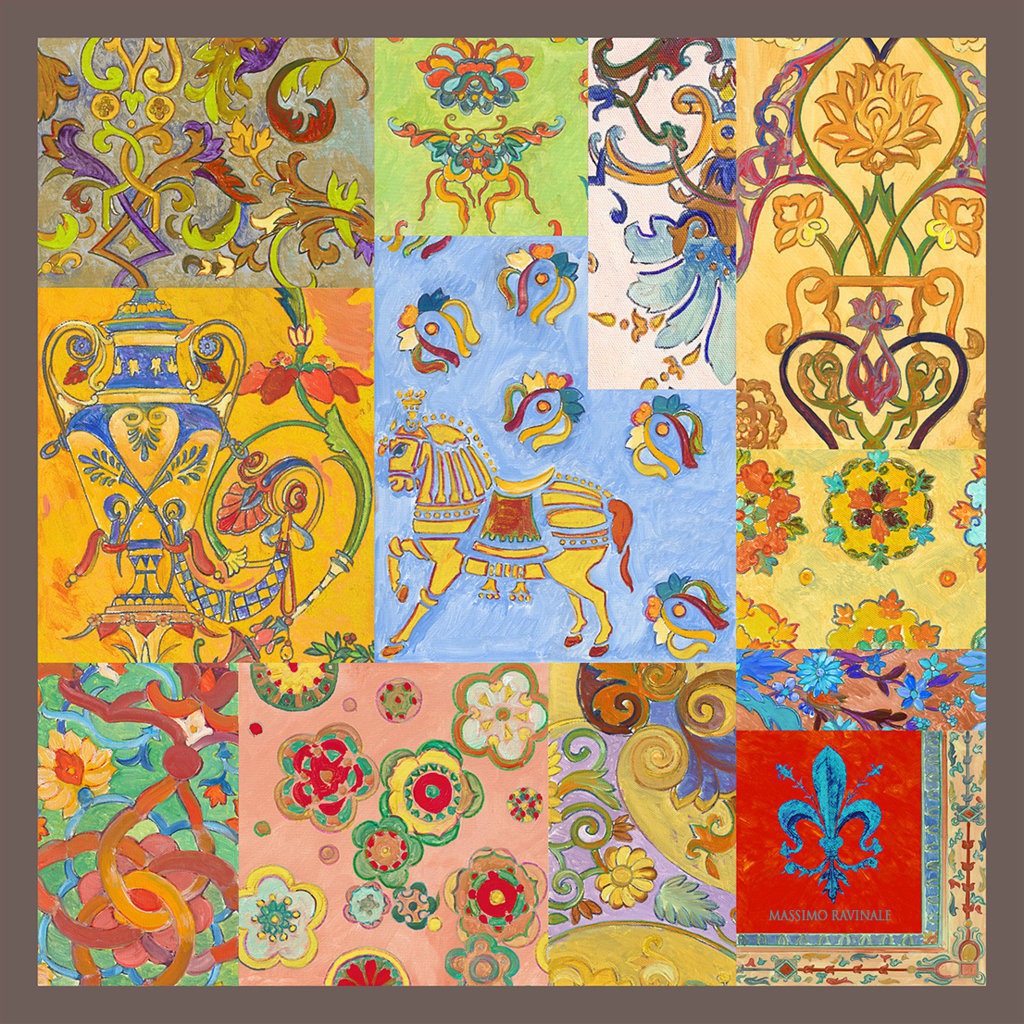 Un omaggio alla diversità della cultura tessile di tutto il mondo unita in un prezioso collage Prodotto artigianale interamente realizzato in Italia Disegno esclusivo protetto da copyright